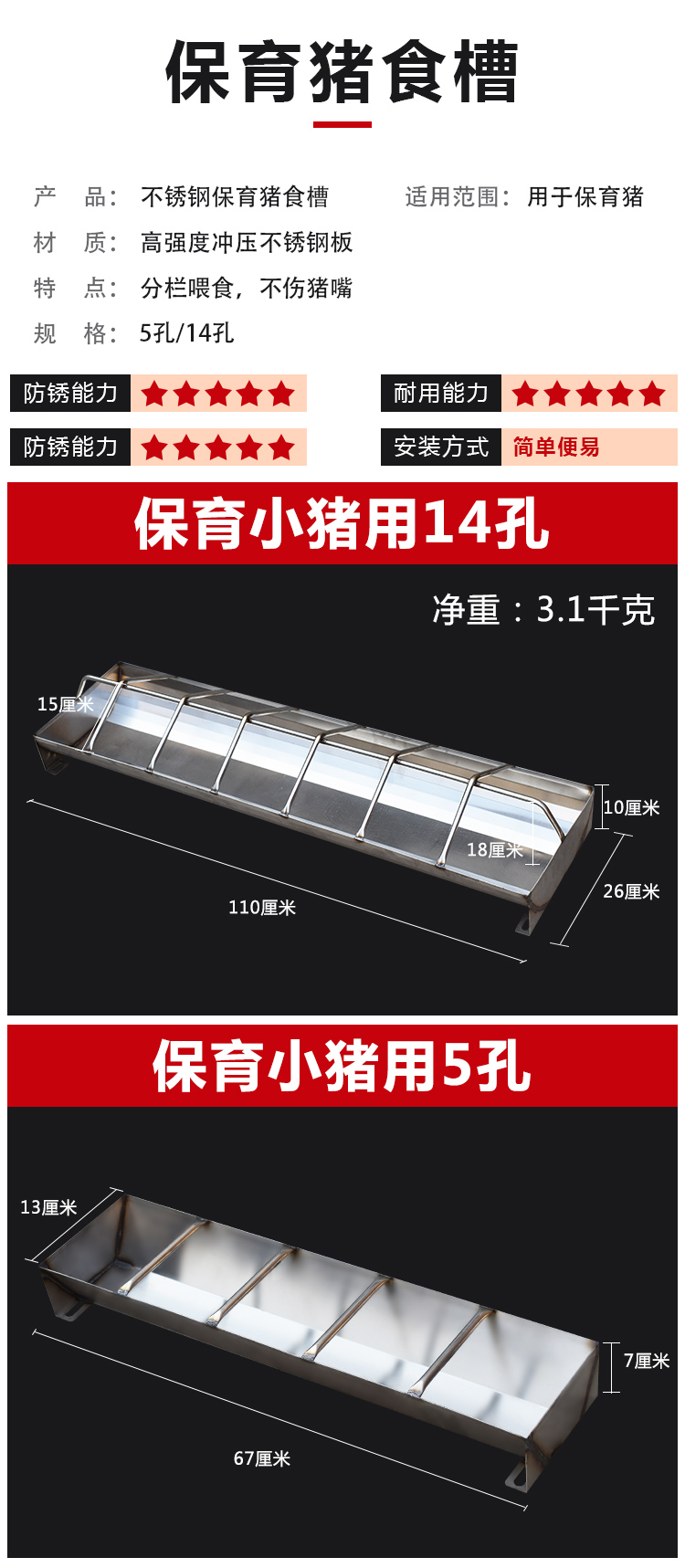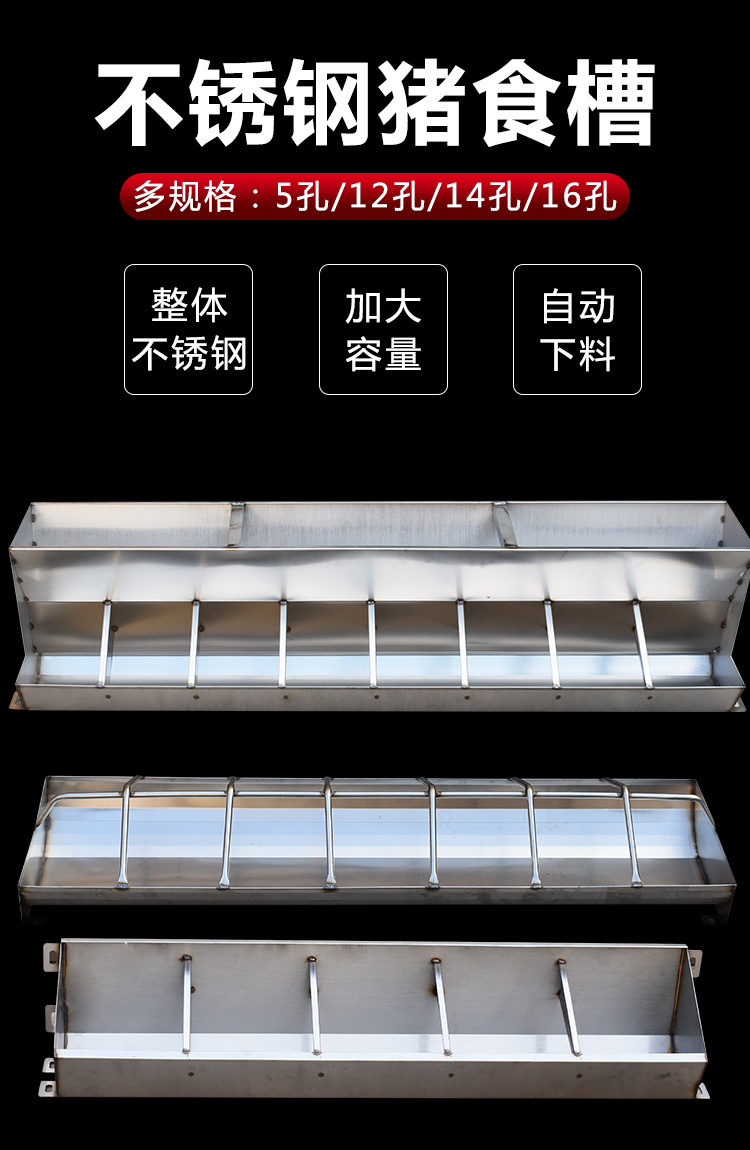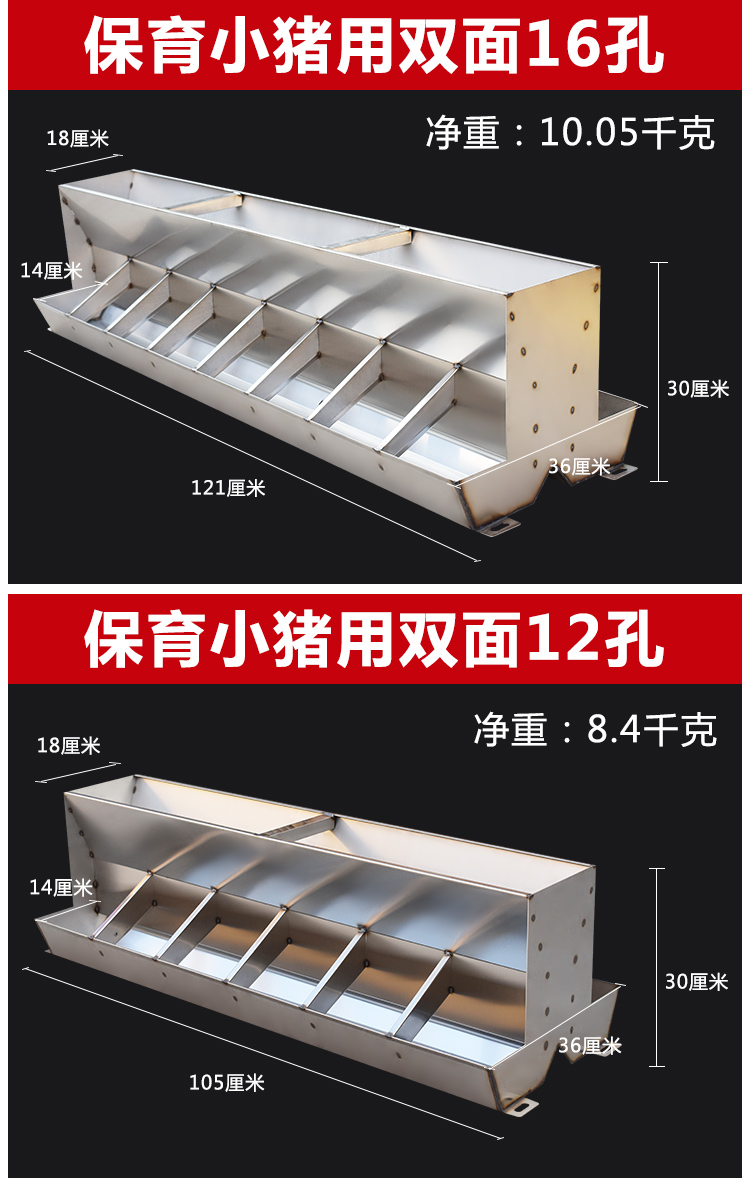不锈钢双面食槽保育猪自动采食槽猪用料槽长方形吃食槽仔猪补料槽