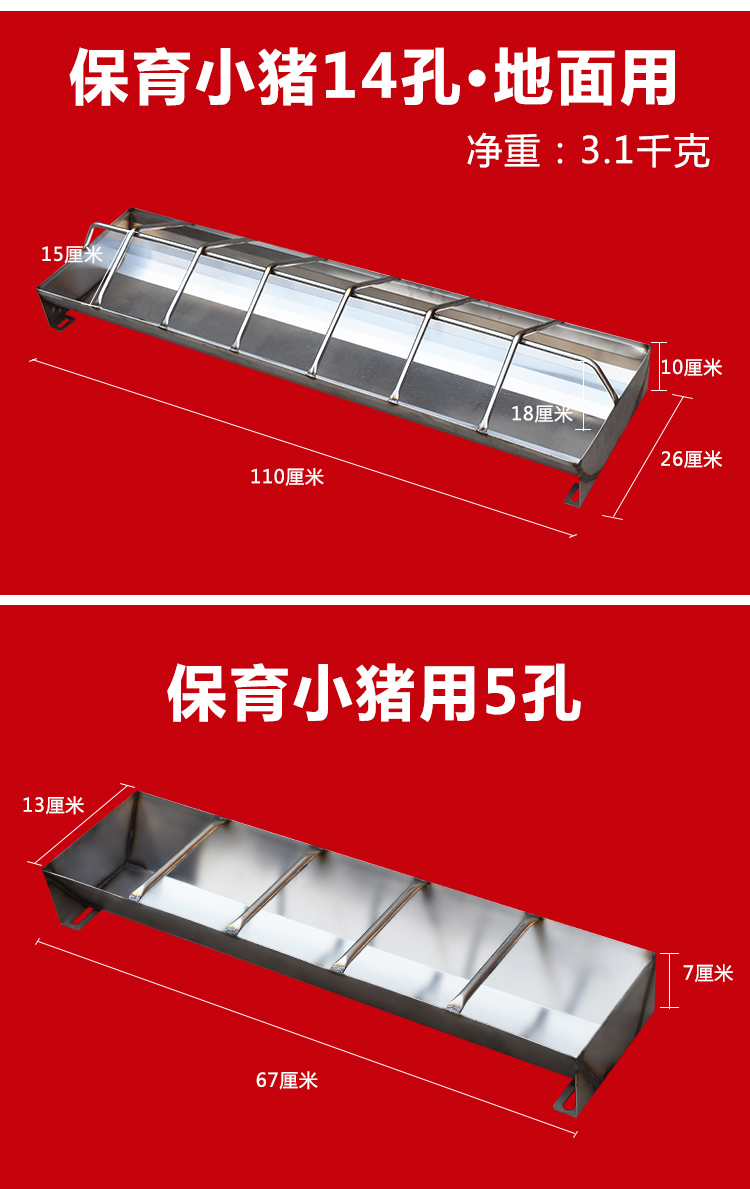 不锈钢双面料槽猪用食槽仔猪补料槽产床保育采食槽小猪吃食槽长槽