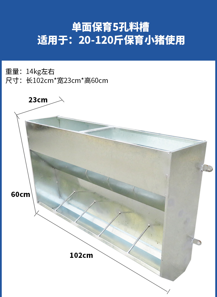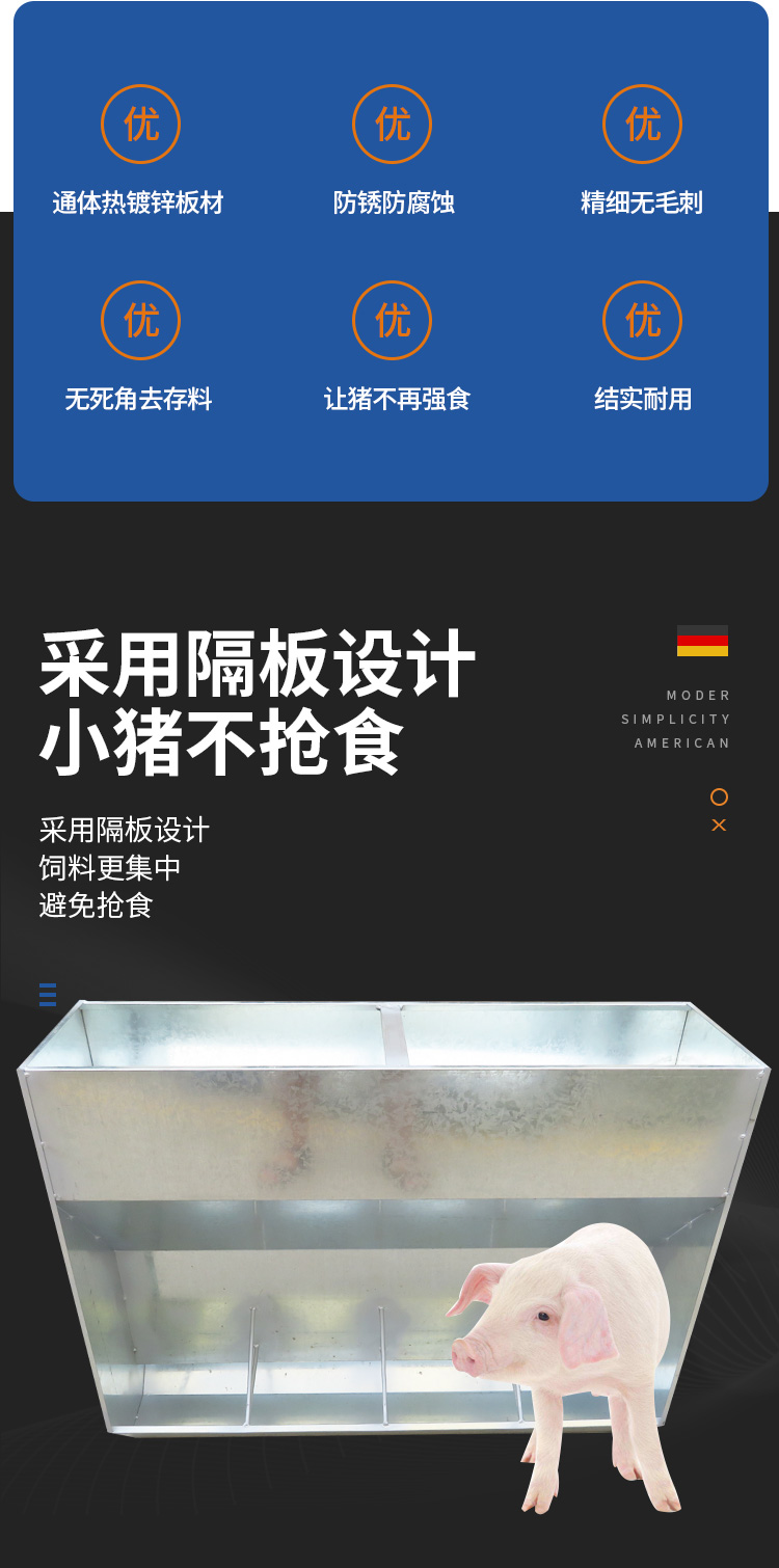 育肥镀锌单面料槽保育栏镀锌猪料槽加厚保育猪槽小猪食槽猪用料槽