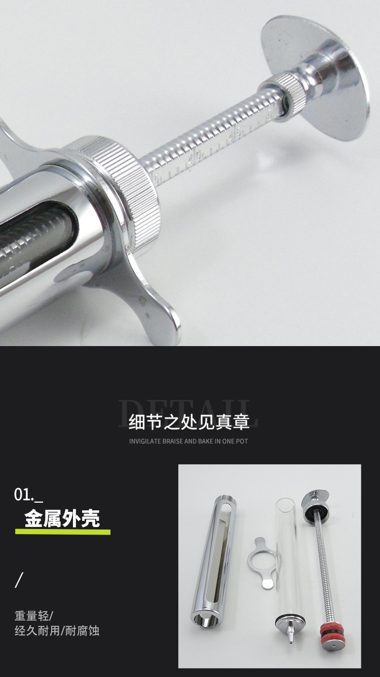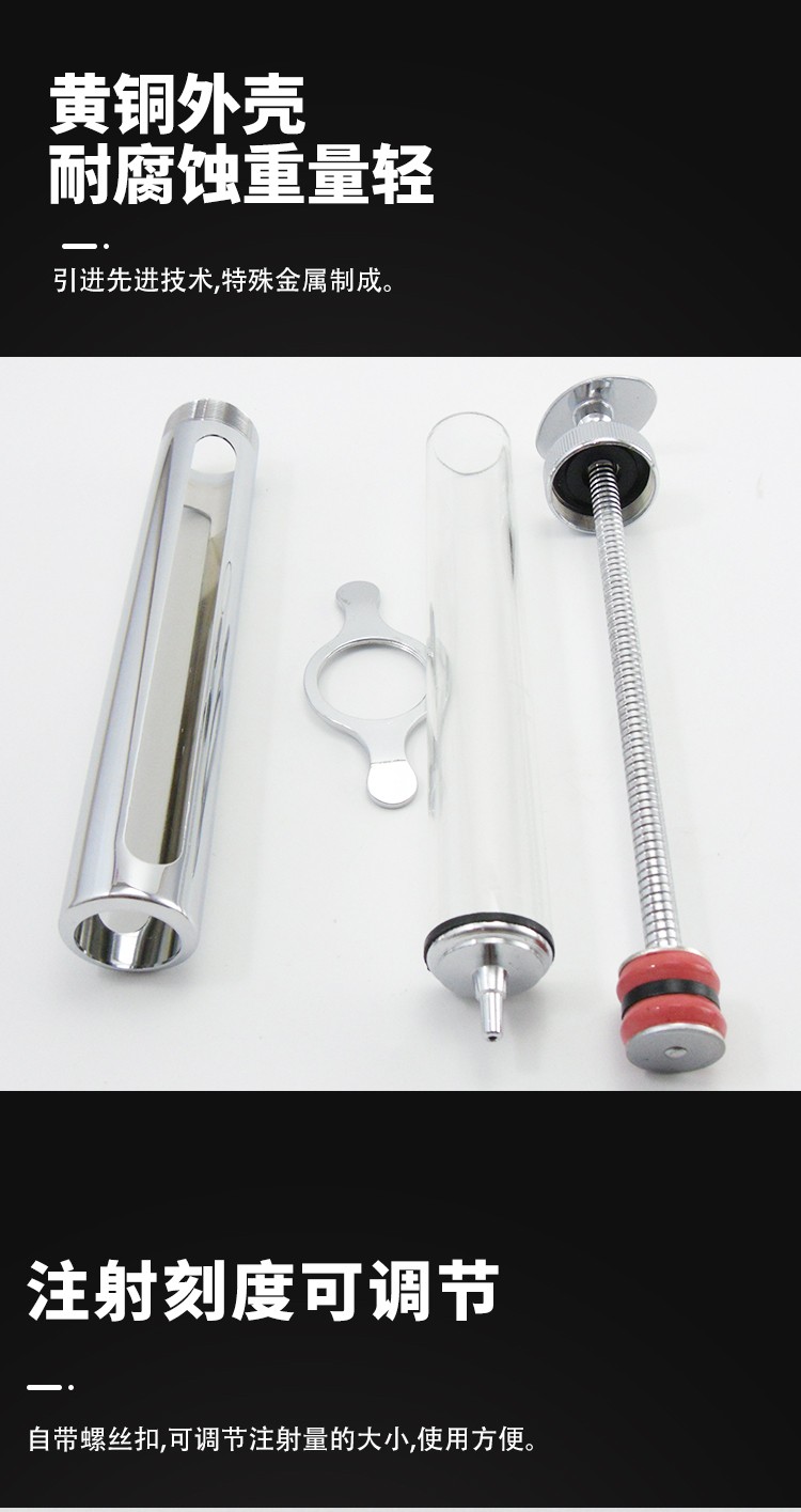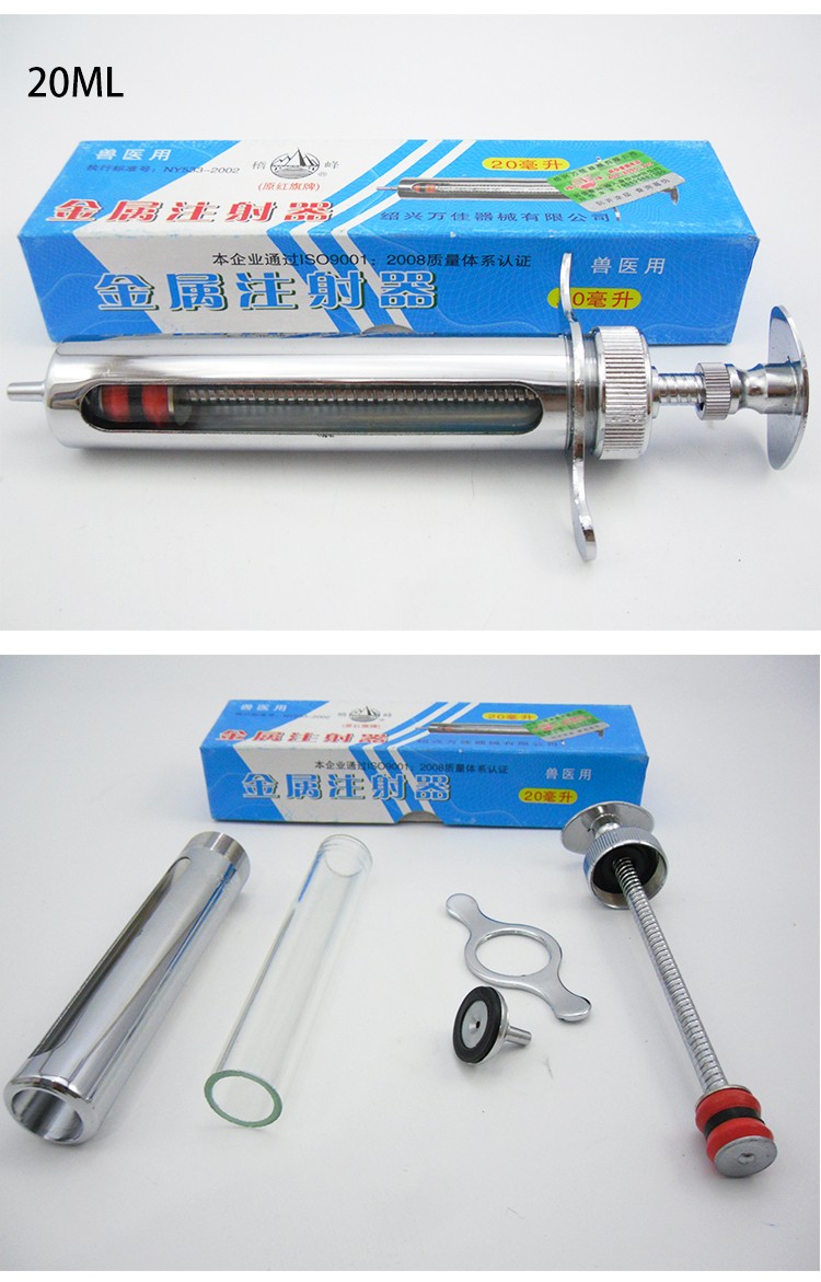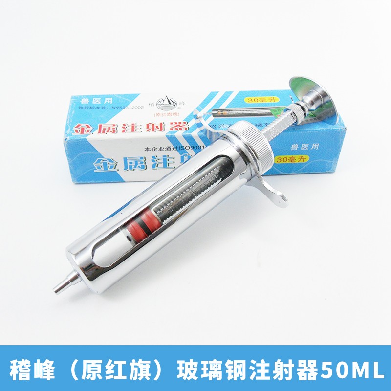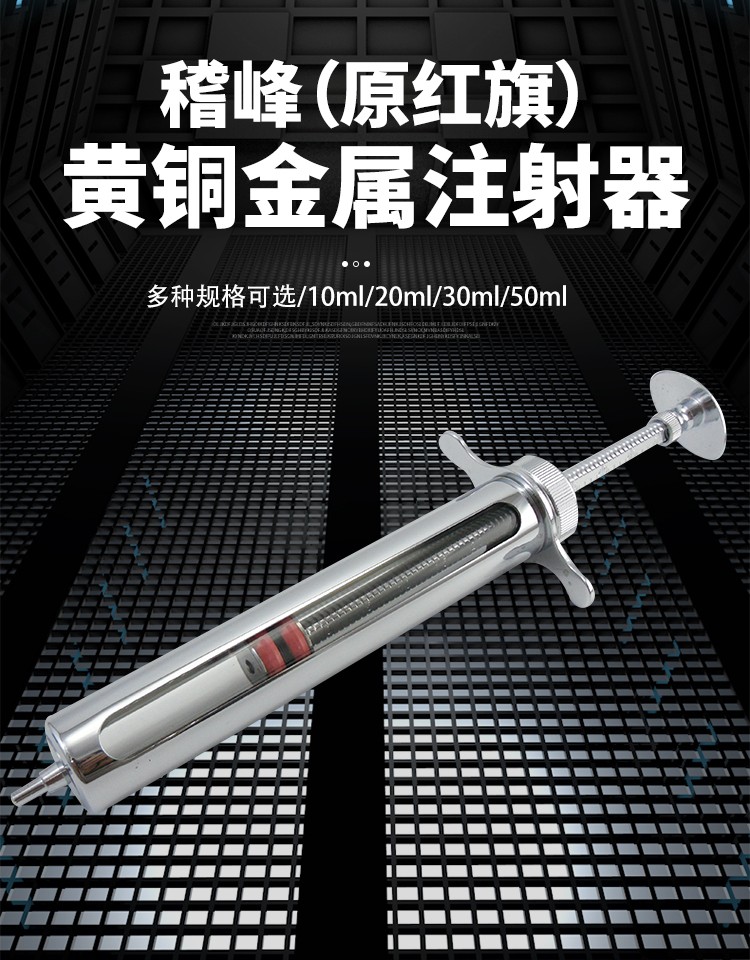 红旗牌兽用10ml注射针器不锈钢金属注射器铜头兽用针筒黄铜注射器